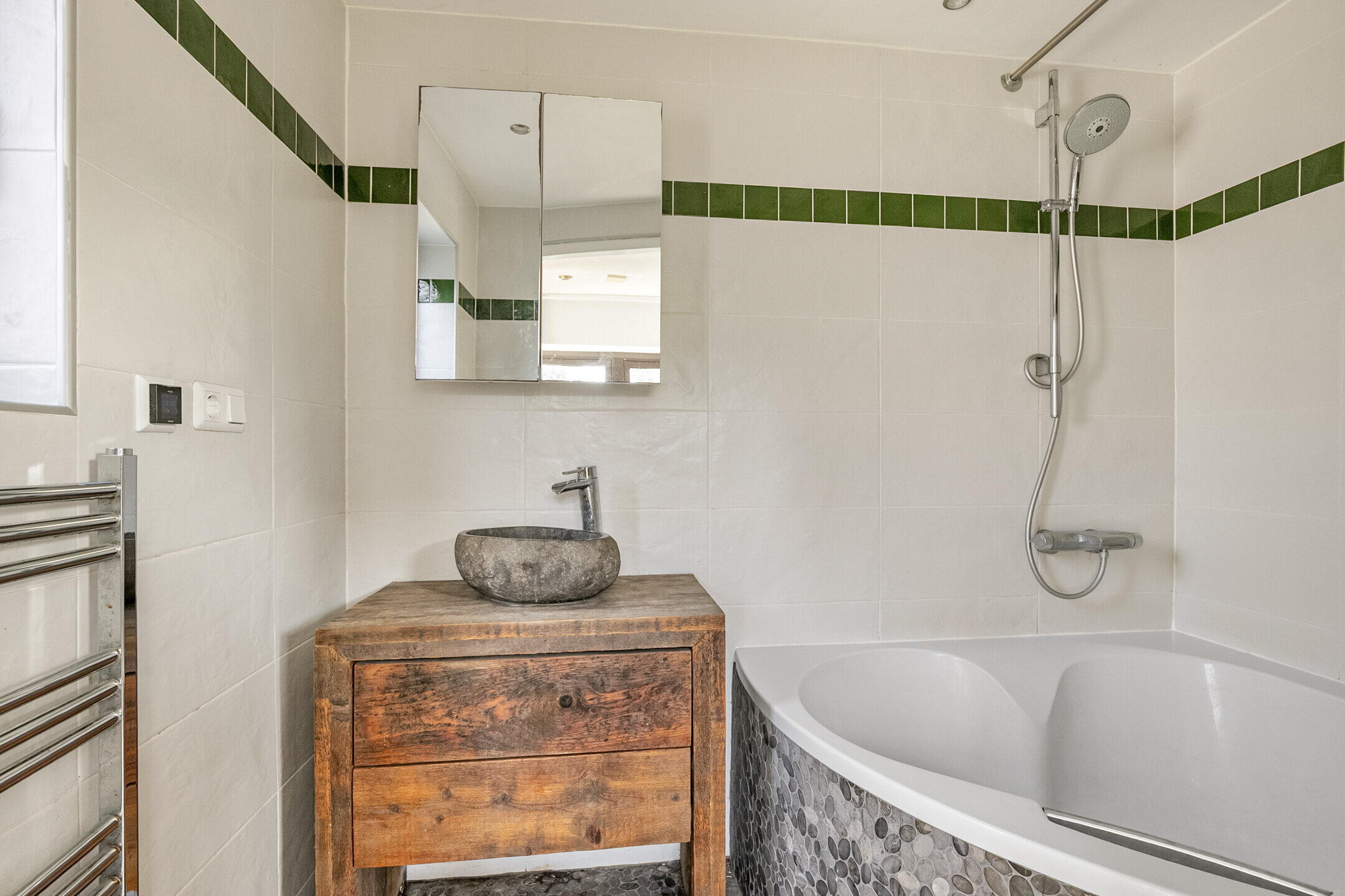 - Ligbad, wastafel, wastafelmeubel, vloerverwarming